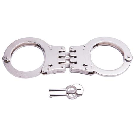Enhance your operational readiness with the UZI Double Lock Hinged Handcuff with 2 Keys, a stainless steel, silver-finished restraint device that promises performance and reliability when it matters most.