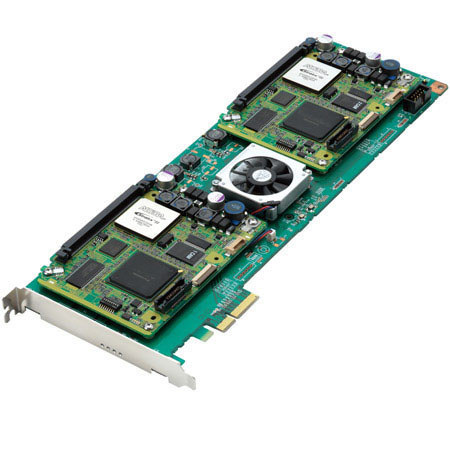 The Grass Valley / Canopus FIRECODER Intra is a single PCI Express form factor board that provides for two to three times faster than real-time encoding to AVC Intra 50/100 from the Grass Valley EDIUS timeline. Encoding of AVC-Intra 50/100 files from the EDIUS timeline is greatly enhanced by FIRECODER Intra.