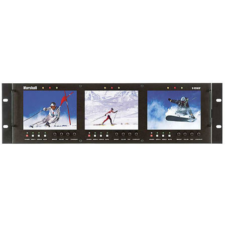 • The V-R563P is a rack mounted unit that has three independently controlled 5.6" active matrix LCD panels with active loop through feature. These 5.6" panels have 960 x 234 pixels producing a true high resolution image. This unit also has a unique feature that allows the unit to tilt up or down for optimum viewing angle.