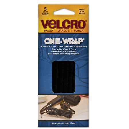 The VELCRO Brand ONE-WRAP 8 x 0.5" Straps (Black) are strong, durable and secure straps. They are easy to use and reposition. The strap attaches to itself - no knots. These straps are great for bundling and storage of items in home, garage, or jobsite. The strap attaches to cord or cable, so the strap will not be lost. Increase the overlap to increase strength.