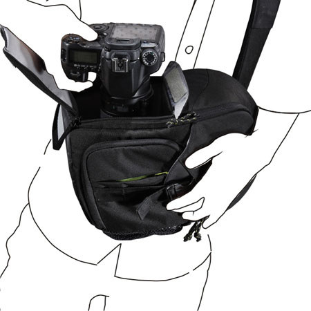 I was disappointed with this bag for a few reasons, it took a lot of 'finnagalling' to get my camera and one lens in the bag. Then when I finally got everything awkwardly in, I put it on and it pulled heavily on my one shoulder, the bag itself is easy to adjust but I just couldn't make it fit comfortably. Also, once wearing the bag, I found it rather difficult to access the bag without fully taking it off. Overall I give it one big frowny face :(