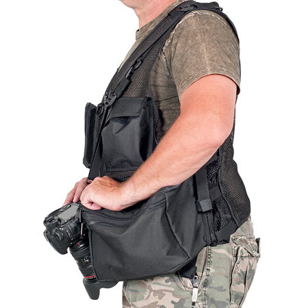 The Vest Guy Urban 5 Photo Vest (Large, Coyote Mesh) features two standard lens pockets and also it is great for wide angle lens. It will also accommodate a flash, battery pack and cargo pocket. This cargo pocket will hold up to three standard / wide-angle lens and supplies two dividers, or remove the Velcro.