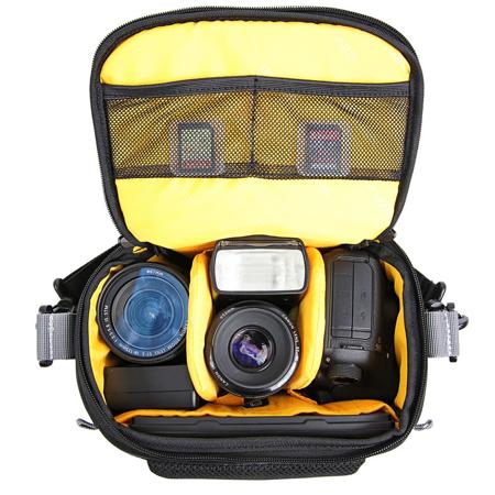 Very sturdy and comfortable bag. Just wish it had more outside pockets. Also, this bag doesn't fit all the items that are advertised by the manufacturer. It fits a camera body and a lens. However, an external flash needs to be removed and stored separately.