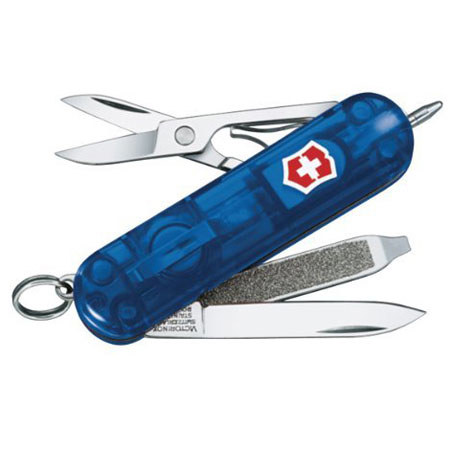 The Victorinox 53188 Swiss Army Signature Lite (Sapphire) has a small blade, scissors and nail file. It comes with LED light which makes it handy for operating in dimly lit areas and a retractable pen which comes in handy for writing quick notes when you're on the go. Signature Lite pocket knife is lightweight and fits great in any pocket, purse or on any key chain. This will make a great companion for you or a wonderful gift for family and friends. The Swiss Army knife carries Victorinox famous lifetime warranty against any defects in material and workmanship.