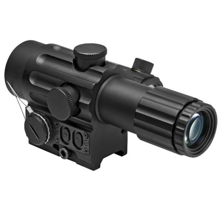 The NcSTAR Vism Duo Series 4x32 Scope features new Urban Tactical Reticle (Blue) for quick target acquisition. 30deg. Offset Reflex Green Dot Optic maintains the same bore height as scope reticle. The Scope and Reflex Optic each have independent zeroing adjustments.