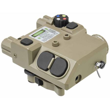 The right pod of this versatile laser designator houses 4 color LED navigation lights - white, red, green, and blue. These lights can be selected via a top-mounted 4-color rotary switch and activated in the same three ways as the green laser. These LED navigation lights are specifically designed for maneuvering in the dark, providing lower powered lighting that helps preserve your night vision and supplements bright tactical lights, which may be too intense for navigation purposes.