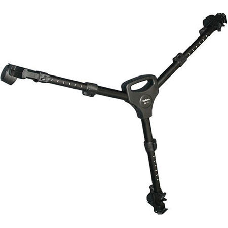 A lightweight, universal tripod dolly which allows virtually any lightweight tripod to become mobile in studio conditions. It uses a unique flip-up castor wheel system that quickly converts the dolly into a stationary tripod platform.