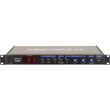 The KC-300 Pro's Sonic Enhancer will dramatically improve the sound quality of your vocal system, allowing you to fine tune the dynamics of the high and low ends of your audio signal. There is also a studio quality 17-step DSP Key Controller to raise and lower the natural musical key by 2 full octaves and key changes can be made to any compatible input source. Also on-board are Vocal Cancel and Vocal Elimination features that remove lead vocals from music tracks.
