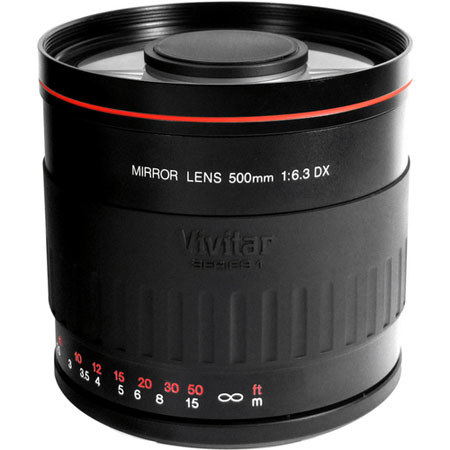 The Vivitar 500 mm f/6.3 Mirror Lens is an incredibly compact and lightweight ultra telephoto. Using an advanced reflex design, its compact size provides superior lightweight handling and maximizes storage convenience. It produces smooth highlights in out of focus areas, which many photographers prize. The minimum focus distance of 6.1 feet allows you to use a faster shutter speed than most lenses of this type. The Super Spectra Coatings assure virtually flare-free photographs even under adverse lighting conditions. A simple T-mount adapter makes this lens work with both film and digital SLR cameras.