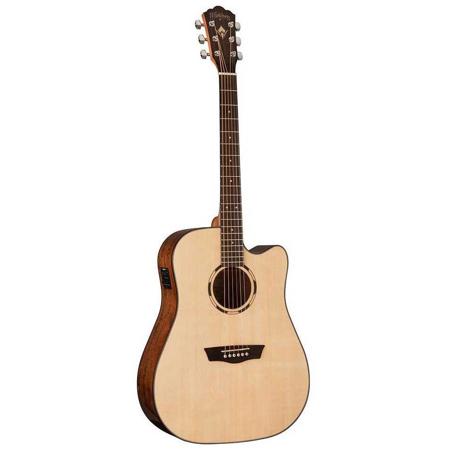 Washburn's Woodline 10 Series is a perfect balance of affordability, elegance, sound and stability. Building with properly cured select solid soundboards with scalloped-x bracing, a NuBone Nut & Saddle and D'Addario EXP16 strings results in one of the best sounding instruments at the price. Designed to appeal to the aspiring singer-songwriter or finger-stylist, the Woodline features understated details such as class-leading Rosewood and Maple binding and faux-wood rosette and Washburn logo. The Woodline Series is available in a traditional Dreadnought and Washburn's new Orchestra body shape.