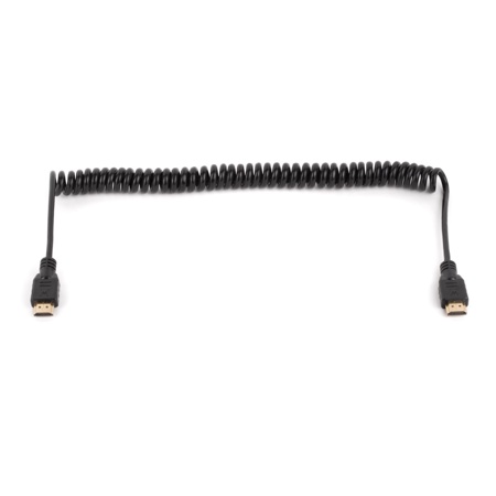 Full size HDMI to full size HDMI with coiled cable. High quality connectors and cable. At rest, the cable measures 20 inches (50.8 cm) and stretches up to 40 inches (101.5 cm).