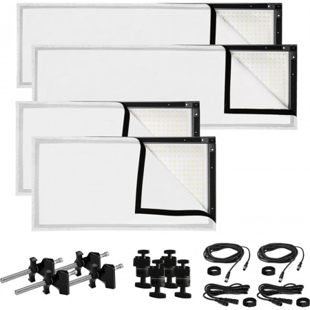 The Flex is a powerful, flexible LED mat that is both lightweight and extremely durable. Peter Hurley's 4-Light Flex Kit includes two 1' x 2' and two 1' x 3' Flex, boasting a total output of over 20,000 lux at 1 meter. This output is fully-dimmable and daylight balanced at 5600K with an impressive 95 CRI. These Flex mats mount quickly via built-in industrial hook-and-loop tape to the included Scrim Jim Cine frames. The modular frames breakdown effortlessly and are constructed with heavy-duty aluminum for safe and easy portability. The included 1-stop diffusion Silk Diffusers mount instantly to these frames to diffuse and perfect the Flex output. Once modified with the Scrim Jim Cine frames, the Flex can be mounted to light stands thanks to built-in 3/8-16 threads, the included universal studs and the sleek dual-socket magic arms. After mounting, light positioning can be quickly adjusted with the dual-socket magic arm's ball head. 16' extension cables are also included for easier use in-studio or on-location.