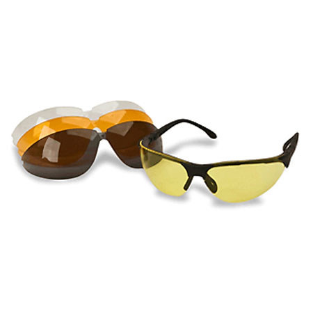 The Walkers Game Ear Sport Glasses (GWP-ASG4L) include four interchangeable color lenses. Walkers Game Ear All-Sports Eyewear provides high-grade polycarbonate lenses that all exceed ANSI high impact requirements. These Walkers Shooting Glasses offer 99% UVA/UVB protection. Not only do these shooting glasses provide quick and easy lens replacement, but they also have a ratcheting lens pitch adjustment for custom fit and comfort.