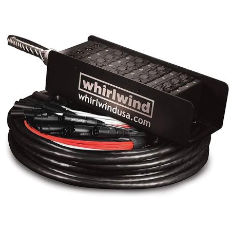 The Whirlwind 250' Box to Fan 4 XLR Medusa Elite Snake Cable has 16 XLR Inputs. This Medusa Elite offers the same features as the Medusa Standard series with the addition of SnakeSkin on the fanouts for ultimate fanout protection, Metal chasis mount XLR connectors and a Pig Bag to protect the fanouts during storage or when not in use.