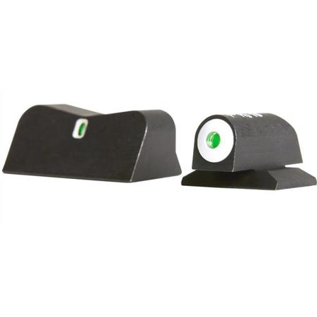 The XS sights DXT big dot are Defensive night sights for encounters under any light condition. The Express rear sight features vertical green tritium bar with a highly visible, white outline. The front sight has a large, easy-to-see white ring surrounding the tritium dot. ROUNDED, low profile design won't slow your draw and works with the majority of holsters on the market. Designed to directly replace the factory sights.