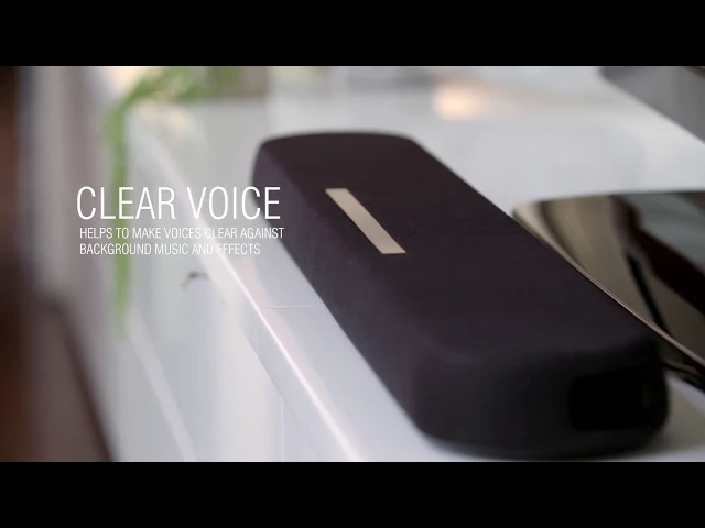 Clear Voice mode brings the sound of narration and dialogue to the fore while keeping the overall sound quality intact. Movies, TV shows, sports commentary and newscasts are all instantly more clear and audible.