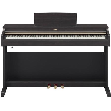 The Yamaha YDP-162 Arius 88-Key Digital Piano features a graded-hammer action keyboard with synthetic ivory keytops that is designed to emulate the feel of an acoustic piano. It has Damper, Sostenuto and Soft foot pedals with continuous control. It provides playback from its two oval speakers and built-in dual 20-watt amplifiers or its two 1/4" headphone jacks. The YDP-162 allows you to select between hard, medium and soft sensitivity types to correspond with your playing style.