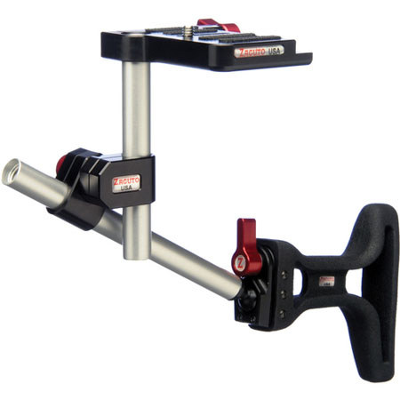 The Target Shooter is Zacuto's lightest kit. It has three points of contact by having both hands on the camera and the gunstock in your chest. The entire kit is infinitely adjustable. You can add a fourth point of contact by adding one of Zacuto's Z-Finders to the kit. The Gorilla Plate, included with the Target Shooter, attaches to the bottom of your camera using the standard tripod screw hole.