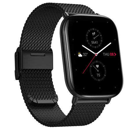 The smartwatch features a pure black 3D curved bezel-less glass and a polished stainless-steel back for a sleek and stylish look.