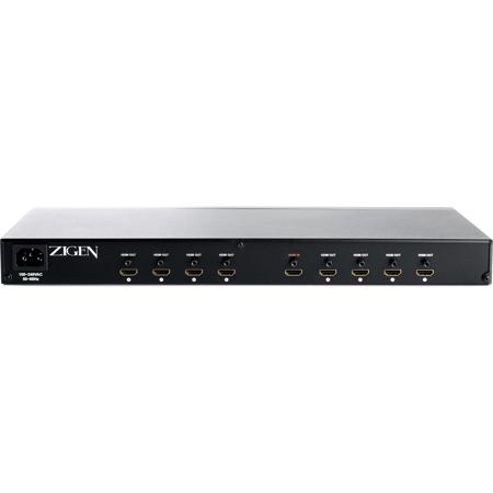 The Zigen 1x8 1080p HDMI Distribution Amplifier allows users to split any HDMI digital video with embedded audio source to 4 HD displays. It will split the HDMI signal to 4 outputs without signal loss and maintain high resolution up to 1080p/60Hz, 3D and 1920x1200 computer signals.