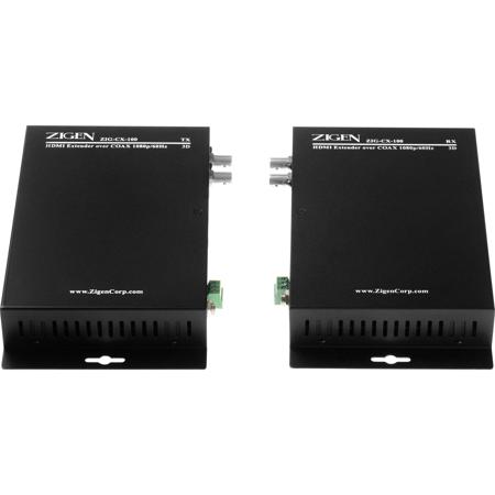 The Zigen 100m HDMI Extender Set Over Coaxial Cable for long distance transmission of HDMI video and embedded audio plus bi-directional control signals over a single Coaxial cable. It can be used as a point-to-point solution or integrated with Matrix switching equipment to extend inputs or outputs to remote locations. The transmitter and receiver sets support simultaneous transmission of bi-directional RS-232 and IR signals from a control system, providing remote control to source equipment or displays. It is Compliant with HDMI 1.4, 3D, HDCP, DVI - D standards.