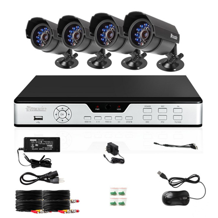 The Zmodo PKD-DK4216 4-Channel H.264 standalone DVR and four indoor/outdoor IR security cameras provide everything you need to have your surveillance system up and running in your home or business quickly and easily.