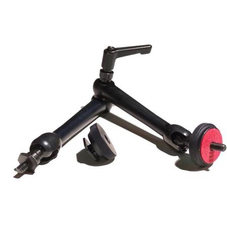 Cine Arm has been redesigned with equal length on both sides of the arm for increased strength and holding resistance. Noga's rugged, lightweight 3-joint mounting arms have become an essential accessory for the professional cinematographer. Compatible with a wide range of cameras, they attach easily via a standard 3/8" and 1/4"-20 screws and are simple and ease to use. Supporting a monitor or camera light, the arm can be moved to the left or right of the lens, raised or lowered and even tilted up or down to provide the clearest view or to get just the right angle for the job. Add the 16x9 Inc. Cine Lock to enable fast and easy non-thread mounting and removal of the 16x9 Inc.