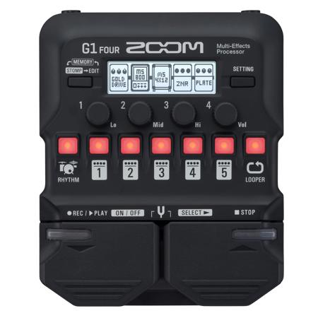 Apart from the effects, the G1 Four includes a looper and drum machine, with 68 rhythm patterns in different time signatures. It also offers access to Zoom Guitar Lab's extensive library of downloadable effects and artist patches.