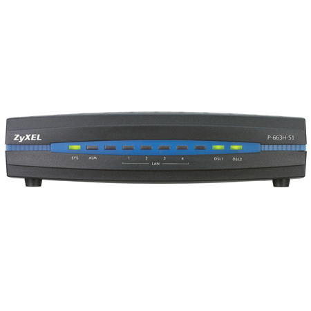 ZyXEL P-663H-51 is an All-in-One ADSL2+ gateway for Home, SOHO and SMB applications. Featuring two ADSL2+ WAN ports and four 10/100Mbps Ethernet LAN ports, the P-663H-51 provides SPI (Stateful Packet Inspection), anti-DOS (Denial of Service) and many Firewall security features to protect against network intrusion and attacks.